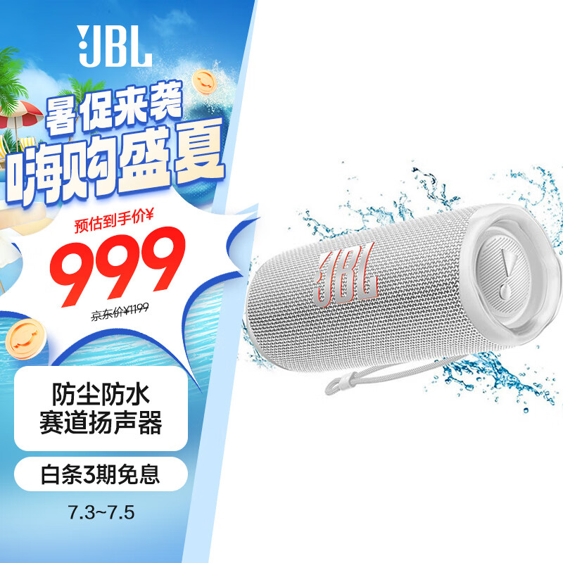 JBL FLIP6 音乐万花筒六代 便携蓝牙音箱 防水防尘 赛道扬声器 独立高音单元 小音响 奶油白价格:999.00元!