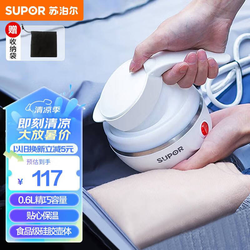 苏泊尔(SUPOR)电热水壶 SW-06J001 食品级硅胶 折叠双电压烧水壶 旅行便携电水壶 0.6L 贴心保温款价格:119.00元!