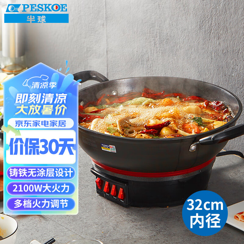 半球(PESKOE)电炒锅32CM多功能锅电热锅大功率多用途锅电锅电煮锅电火锅RD3-32价格:159.00元!