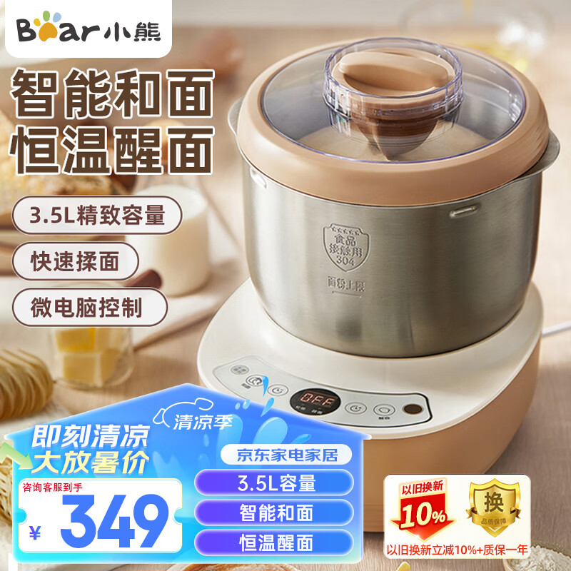 小熊(Bear)和面机 揉面机 厨师机 全自动家用多功能智能活面搅面机 面包面粉发酵醒面 HMJ-A35M1 3.5L价格:349.00元!