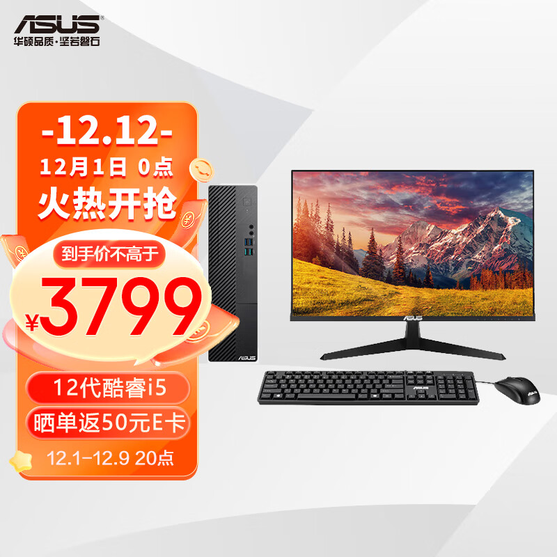 华硕破晓X 个人办公家用商用台式机电脑整机(12代intel i5-12400 16G 512GSSD+1T 小机箱)23.8英寸显示器价格:3799.00元!