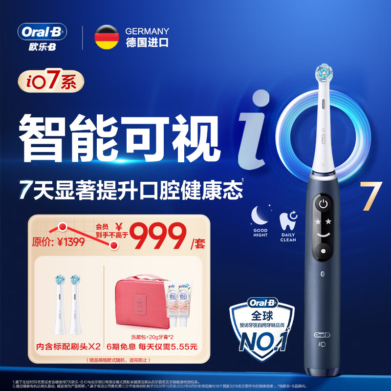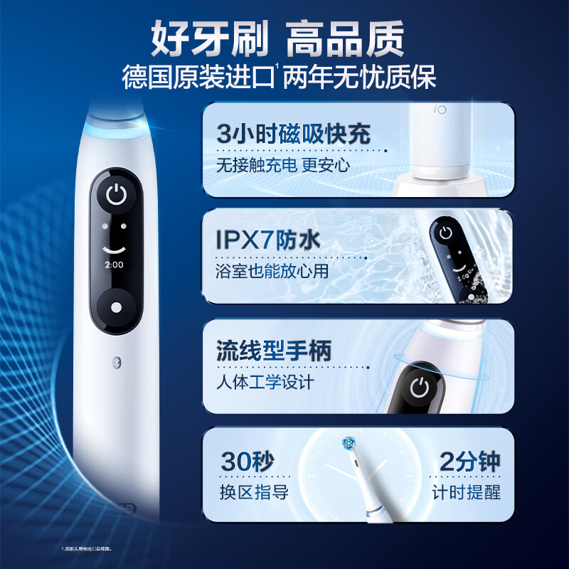 欧乐B成人电动牙刷iO7智能可视磁波刷iO系列圆头微震科技深度清洁牙龈按摩送男友送女友送礼赠生日礼物价格:1089.00元!