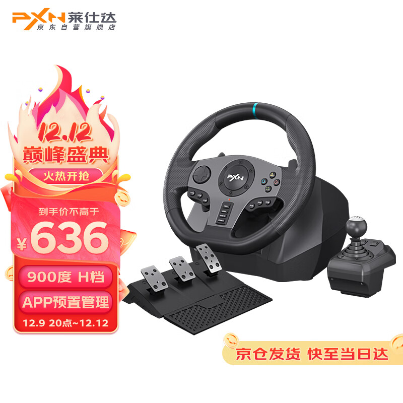 莱仕达900度赛车游戏方向盘 带手排挂挡杆 离合踏板 兼容PC/PS3/PS4/Xbox One/Switch主机)欧卡尘埃遨游中国价格:749.00元!