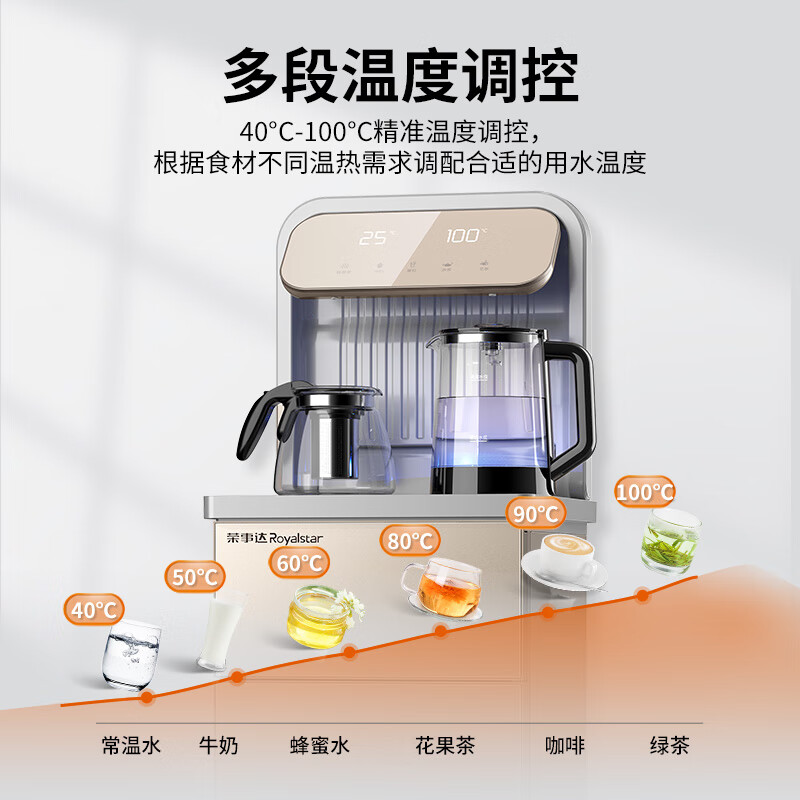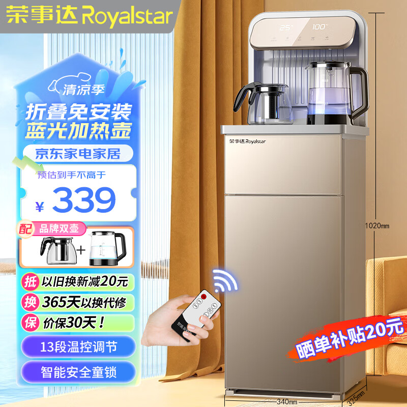 荣事达(Royalstar)茶吧机家用立式多功能折叠免安装遥控调温下置式饮水机大屏双显一键选温CY820价格:359.00元!