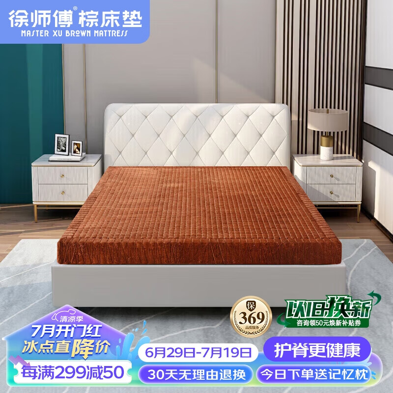 徐师傅全山棕床垫硬棕垫手工线缝单双人榻榻米床垫定制1.5*1.9米价格:2125.00元!