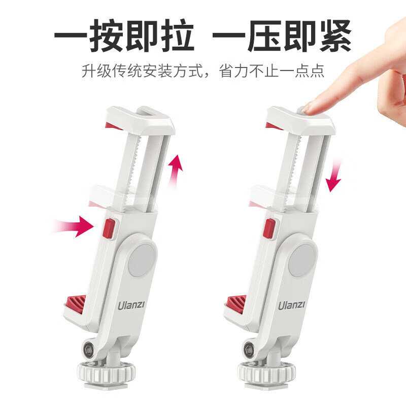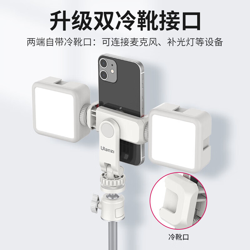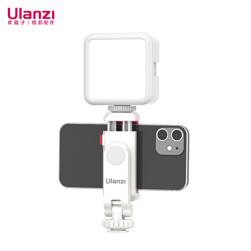 ulanzi 优篮子 ST-6S(白)冷热靴手机夹RGB补光灯套装横竖拍旋转取景翻转屏手机Vlog单反相机多功能摄影夹价格:111.00元!