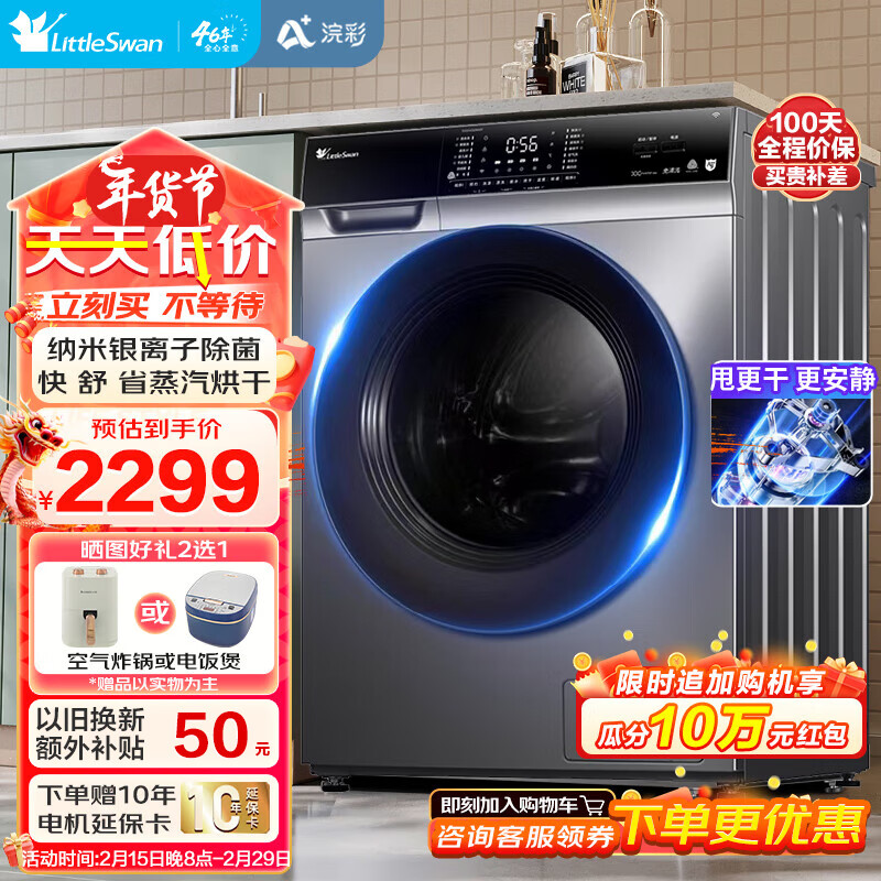 小天鹅(LittleSwan)滚筒洗衣机全自动 10公斤 洗衣机烘干机一体机 空气洗 银离子除菌 家用变频 TD100VC62WADY价格:2268.00元!