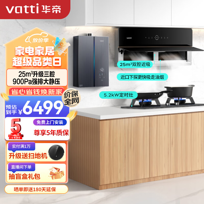 华帝(VATTI)16L水伺服静音下置风机燃热25风量变频大吸力油烟机5.2kW燃气灶多件套装i11210+76B+G5(天然气)价格:7099.00元!