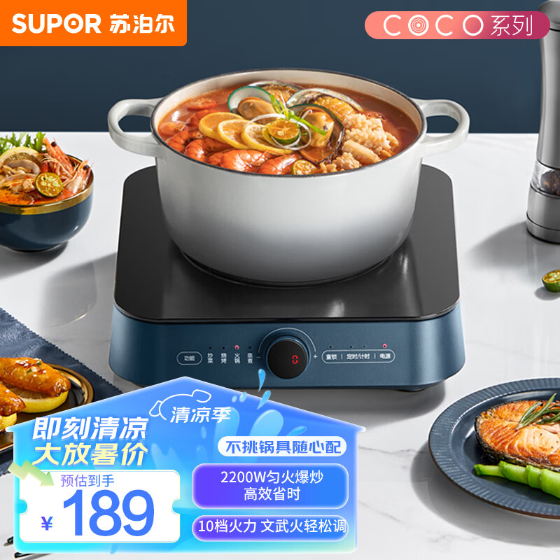 苏泊尔(SUPOR)电磁炉 电陶炉 2200W大功率 无高频电磁辐射 智能计时 家用火锅炉 炒菜 围炉煮茶C22-CS12价格:189.00元!
