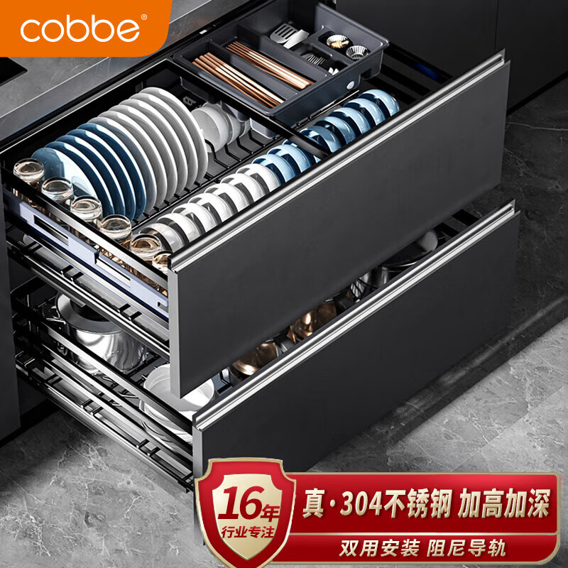 卡贝(cobbe)304不锈钢抽屉式碗篮厨房橱柜双层调味料收纳置物架柜内碗碟拉篮价格:668.00元!