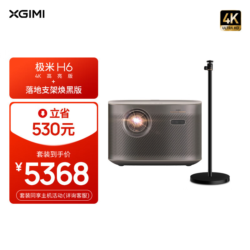极米H6 4K高亮版 套装1 投影仪家用+落地支架焕黑版价格:5368.00元!