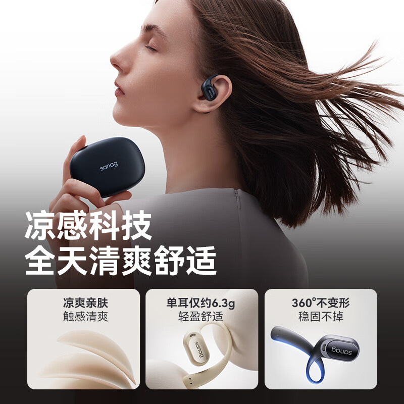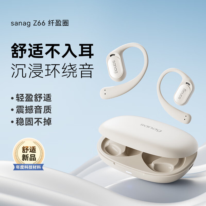 SANAG【高级舒适耳机】Z66蓝牙耳机不入耳骨传导概念运动骑行降噪高端商务通用礼物 燕麦白价格:299.00元!