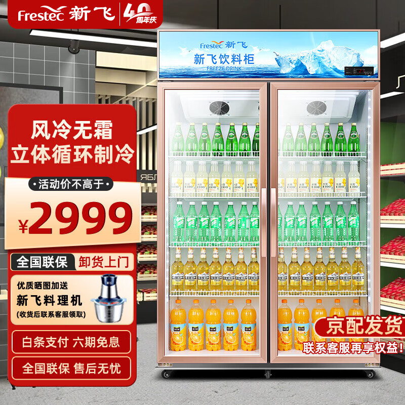 新飞(Frestec)900升双门冷藏冰箱风冷展示柜商用 超市饮料啤酒保鲜冷柜冷饮茶叶玫瑰金 风冷无霜价格:2999.00元!