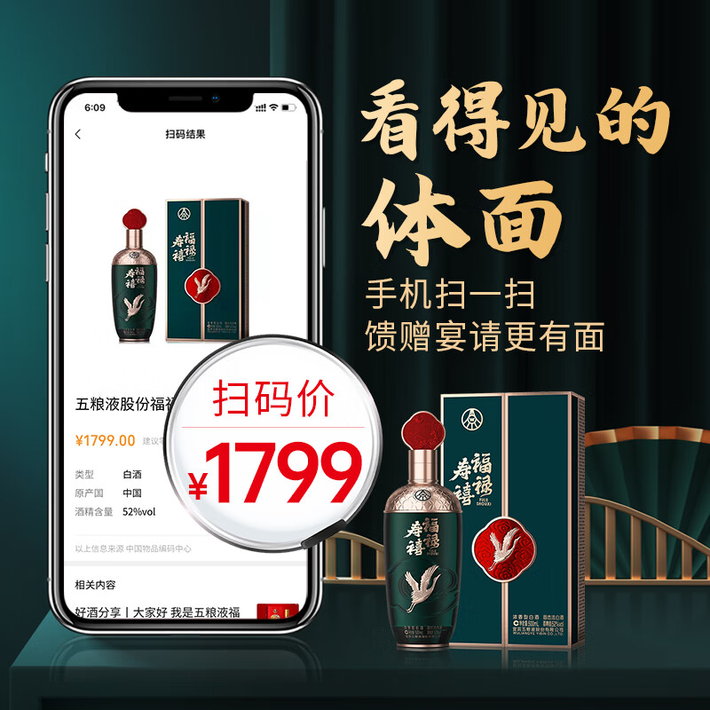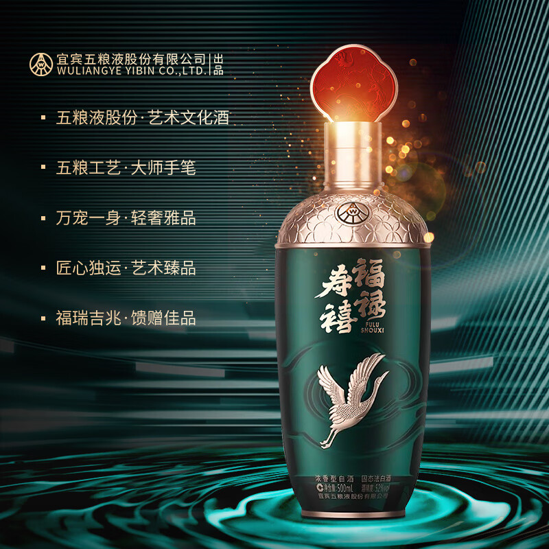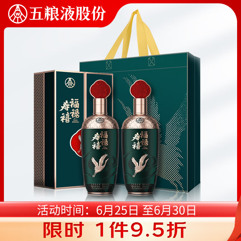 五粮液股份福禄寿禧云浩浓香型白酒52度500ml*2瓶白酒礼盒装宴请送礼价格:559.00元!