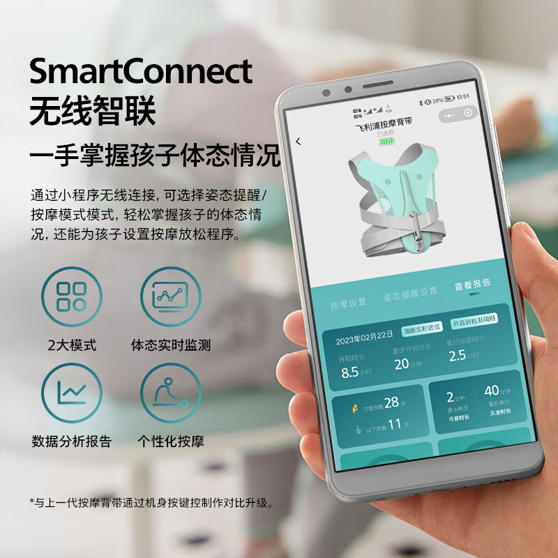 飞利浦(PHILIPS)腰背按摩器按摩背带儿童小孩青少年驼背矫正体态管理背背佳背部按摩器背部5602B S码价格:759.00元!