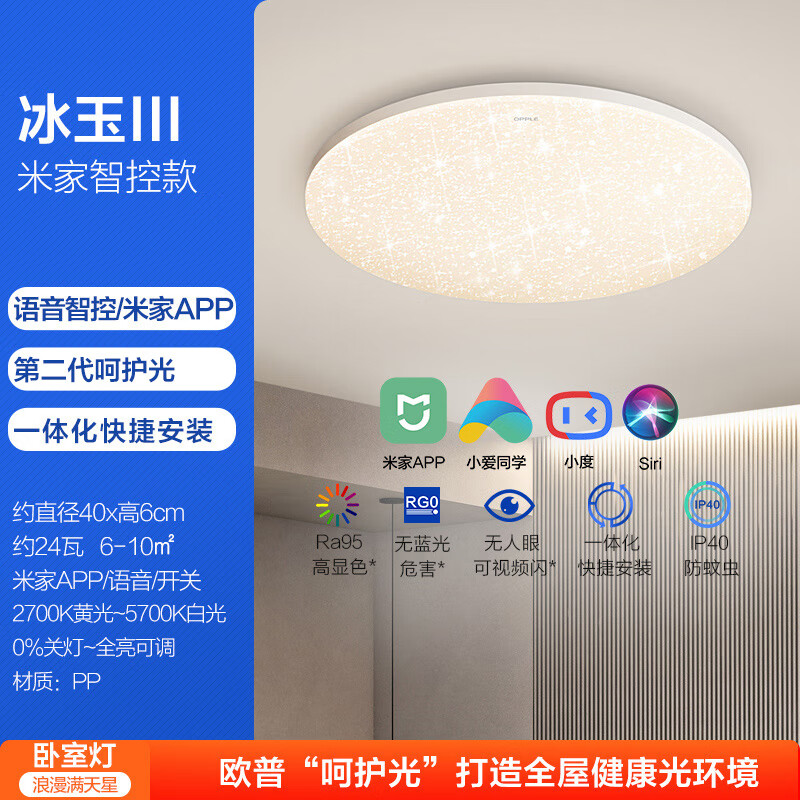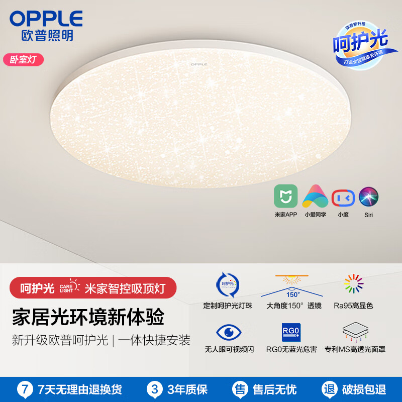 欧普照明(OPPLE) 吸顶灯客厅卧室灯米家智控LED照明灯冰玉 呵护光价格:328.00元!