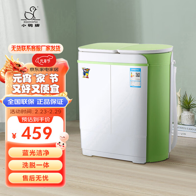 小鸭3.5公斤双缸小型半自动迷你洗衣机 婴儿小洗衣机 内衣裤洗衣机小型 蓝光基础款 XPB35-1626S价格:459.00元!
