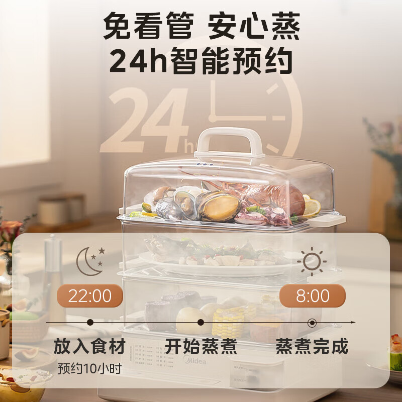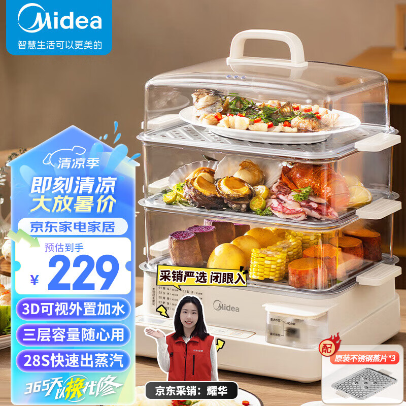 美的(Midea)电蒸锅 22L三层大容量电蒸锅 电蒸箱 家用蒸锅 多用途锅多功能锅蒸包子锅不锈钢全透视窗ZGC322301价格:229.00元!