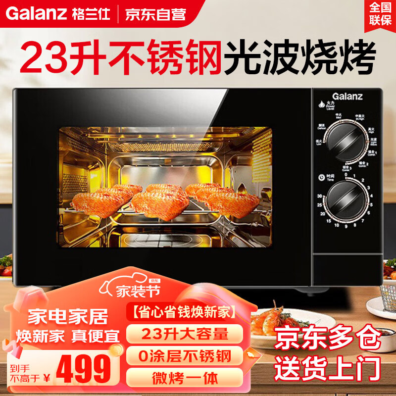 格兰仕家用微波炉平板式不锈钢内胆23升大容量微烤箱一体机线下同款机械旋钮操作光波炉G80F23SP- M8(S0)价格:499.00元!