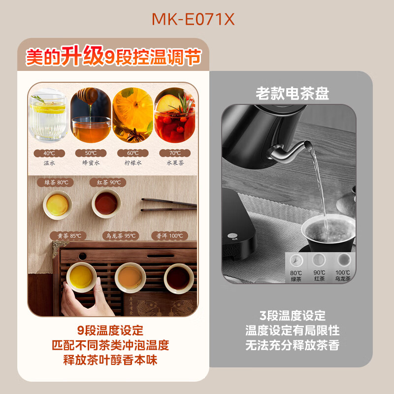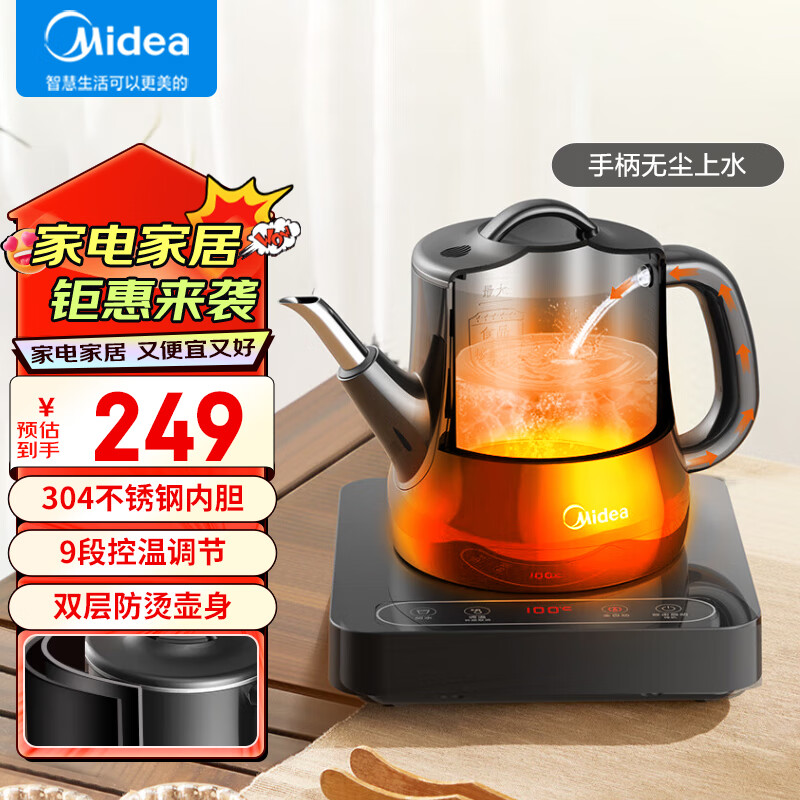 美的(Midea)自动上水电热水壶 煮茶器电茶炉电热水壶烧水壶开水壶养生自动保温防烫电茶盘MK-E071X价格:259.00元!