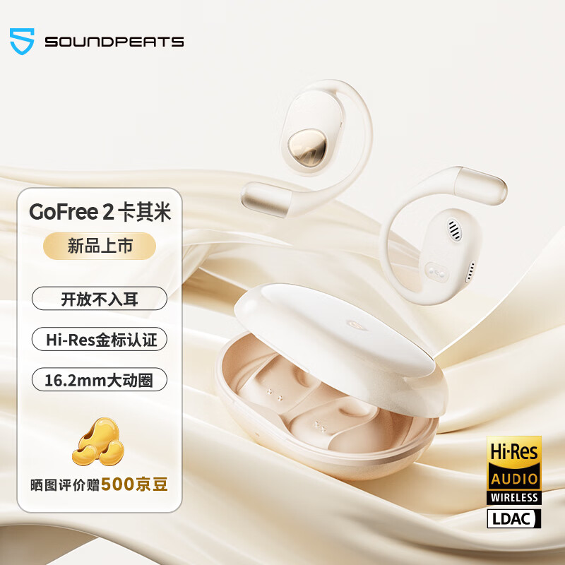 泥炭(SoundPEATS)GoFree 2 不入耳气传导开放式蓝牙耳机 挂耳式长续航运动跑步Hi-Res通话降噪耳机 蓝牙5.3 卡其米价格:279.00元!
