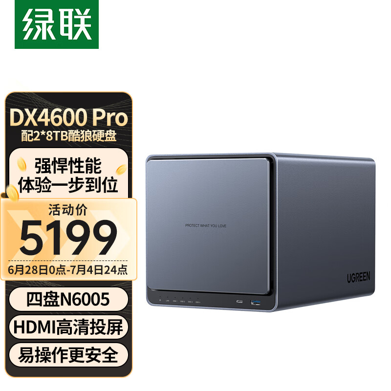 绿联(UGREEN) 私有云DX4600 Pro 16T四盘位Nas网络存储硬盘服务器相册备份文件同步 手机扩容适用iPhone15价格:5499.00元!