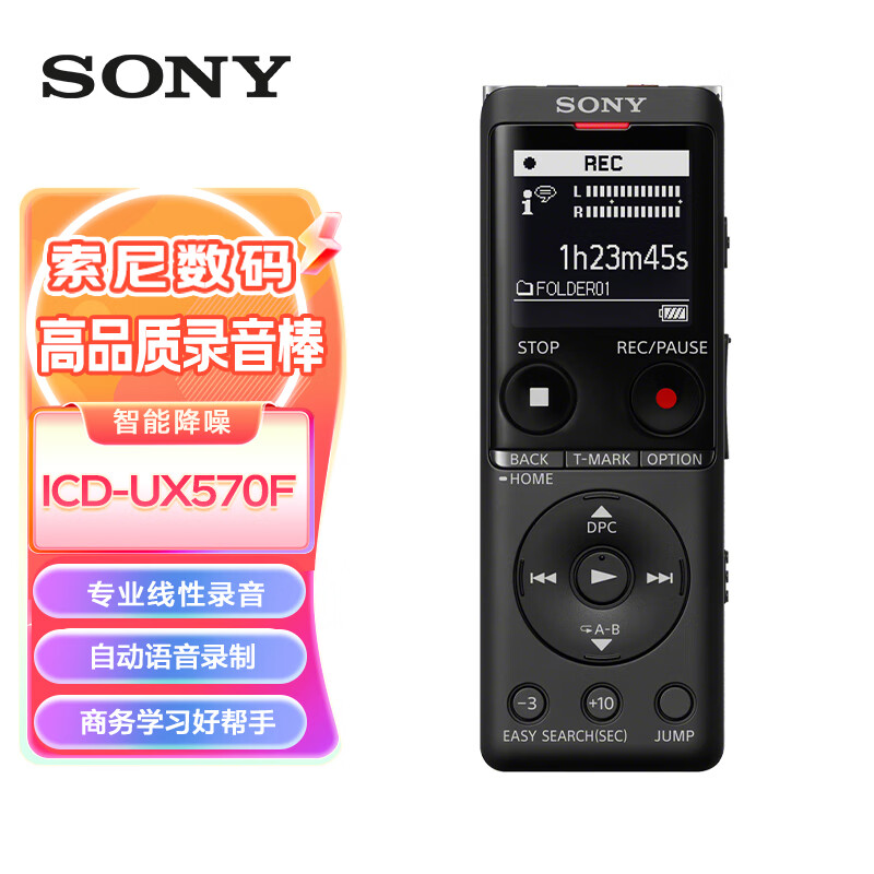 索尼(SONY)录音笔ICD-UX570F 4GB 黑色 智能降噪升级款 专业线性录音棒 商务学习采访支持内录价格:819.00元!