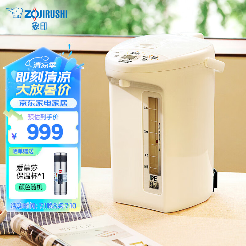 象印(ZO JIRUSHI)电水壶四段控温VE真空节能省电-家用办公4L容量 CV-TDH40C价格:999.00元!