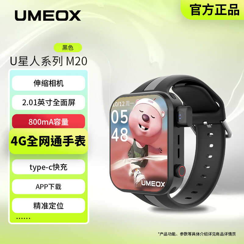UMEOX 智能手表M20儿童电话定位手表小初高中学生专用蓝牙可插卡运动学习表伸缩摄像头APP下载 黑色价格:399.00元!