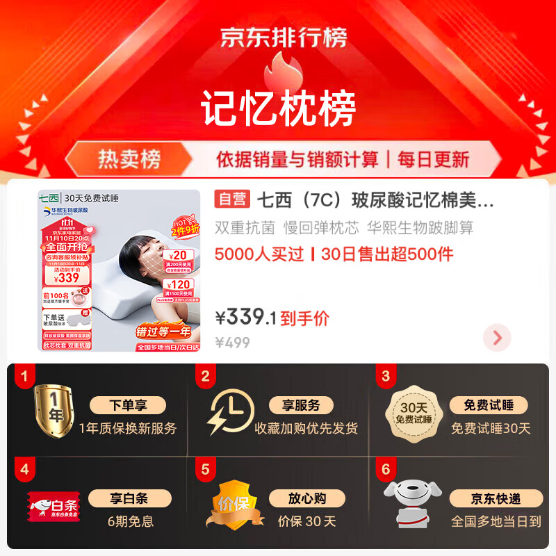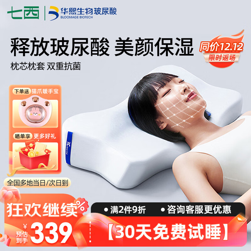 七西(7C)玻尿酸记忆棉美妍枕睡眠枕蝶形颈椎枕头释压慢回弹无压枕芯 玻尿酸美妍枕宁静蓝价格:499.00元!