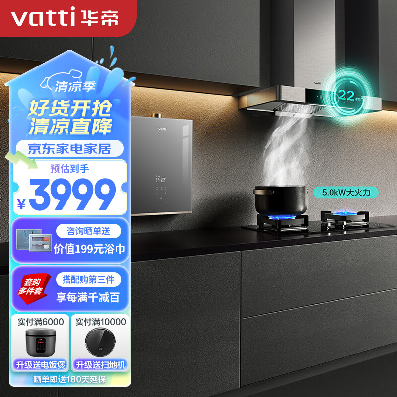 华帝(VATTI)抽油烟机家用欧式油烟机燃气灶具热水器厨房三件套 i11143+72B+152-16(天然气)价格:3999.00元!