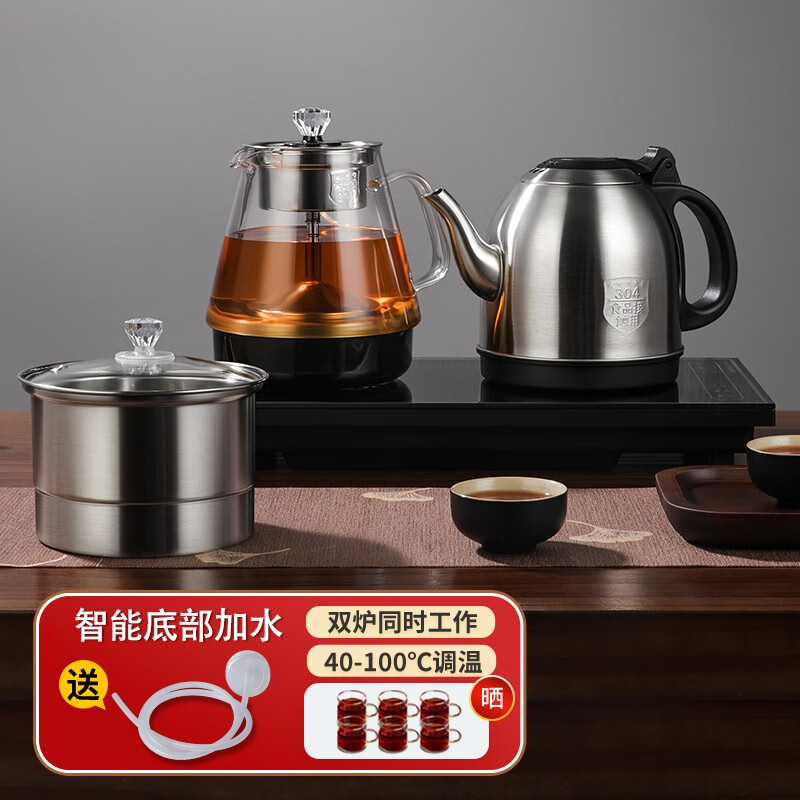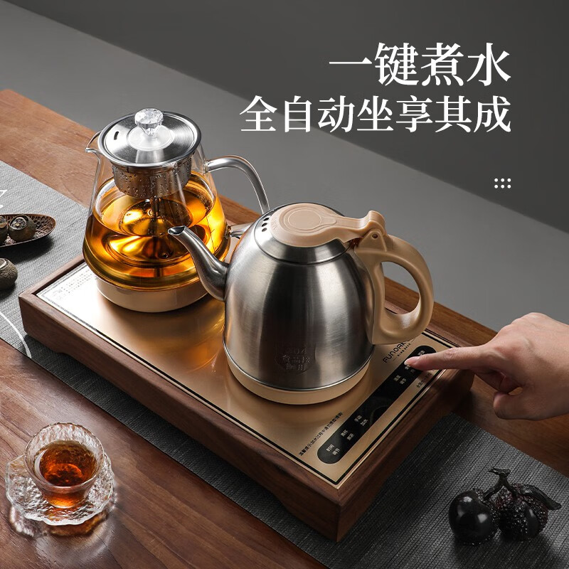 FUNORK全自动上水电热烧水壶煮泡茶专用茶台一体机茶几茶桌嵌入式抽水茶具套装电茶炉烧水器 黑色三件套(37x20cm)价格:298.00元!