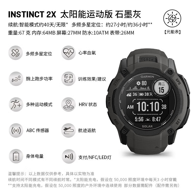 佳明(GARMIN)Instinct本能2X太阳能版石墨灰 智能跑步游泳户外多功能运动手表价格:3580.00元!