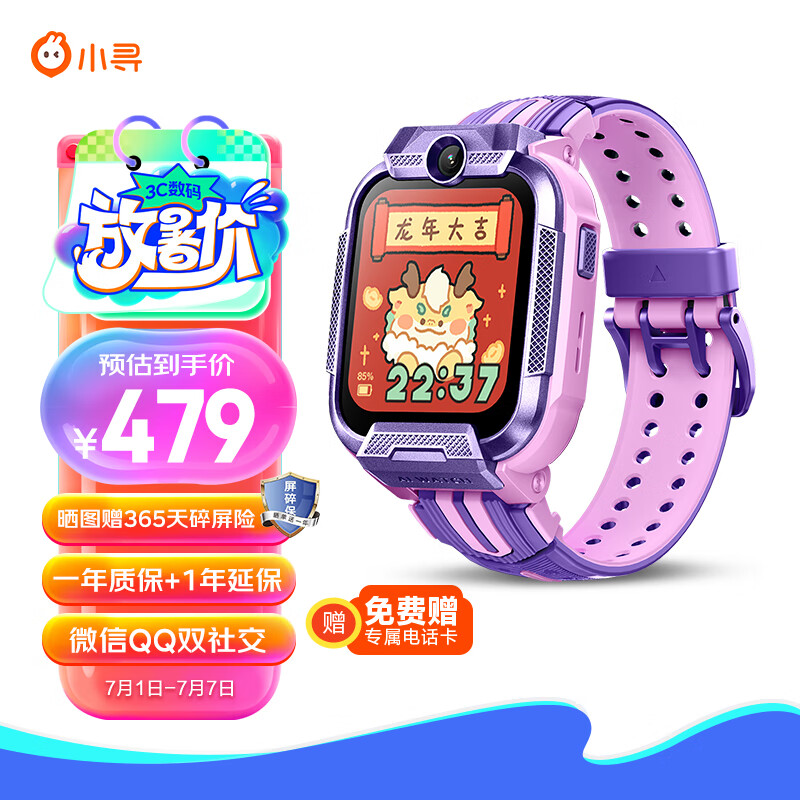 小寻 电话手表Yes3 儿童电话手表 智能学生手表 运动防水双摄定位微信QQ 4G通 女孩礼物 紫色价格:479.00元!