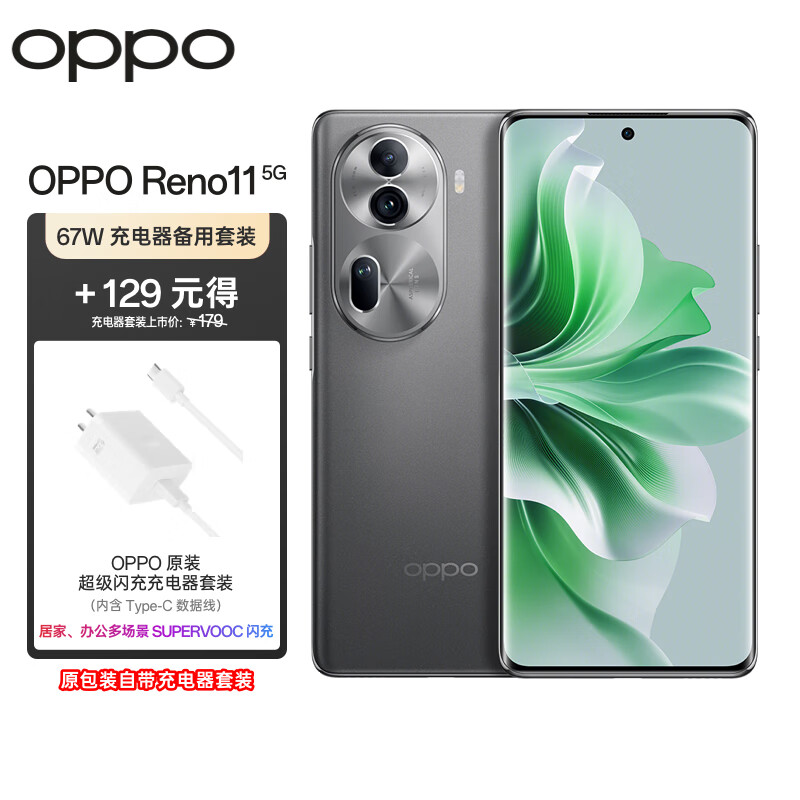 OPPO Reno11 12GB+512GB 曜石黑 单反级人像三摄 天玑8200旗舰芯 5G AI手机【67W充电器备用套装】价格:2928.00元!