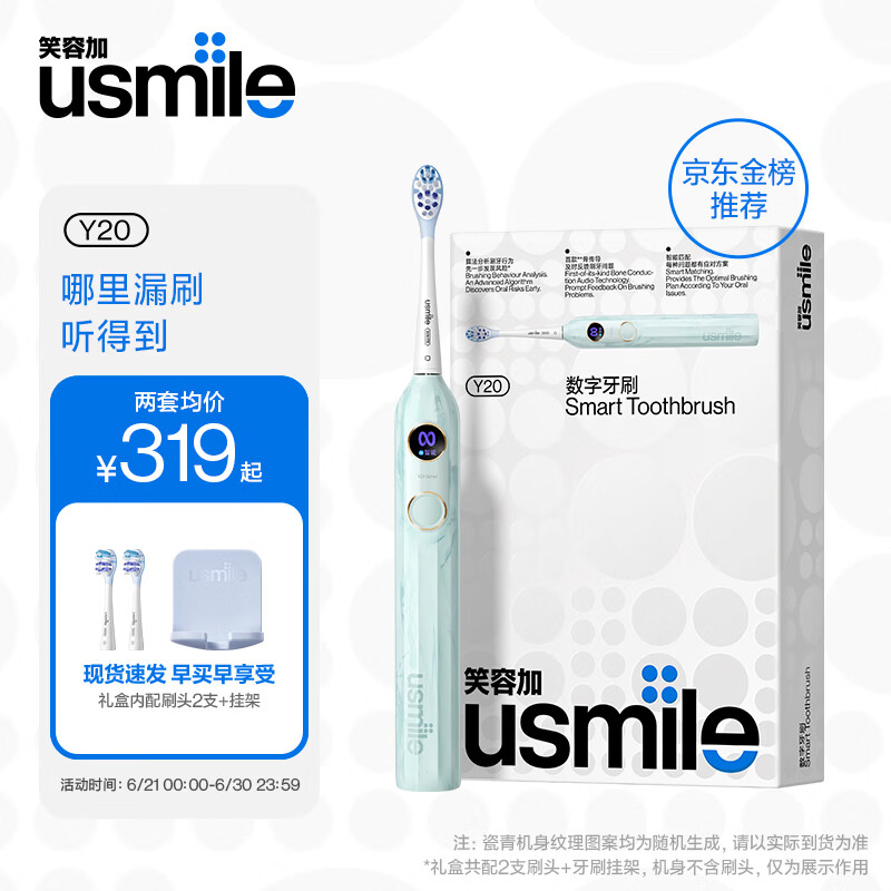 usmile 笑容加电动牙刷 成人声波震动电动牙刷 情侣款送男友/送女友 Y20瓷青 生日礼物价格:329.00元!