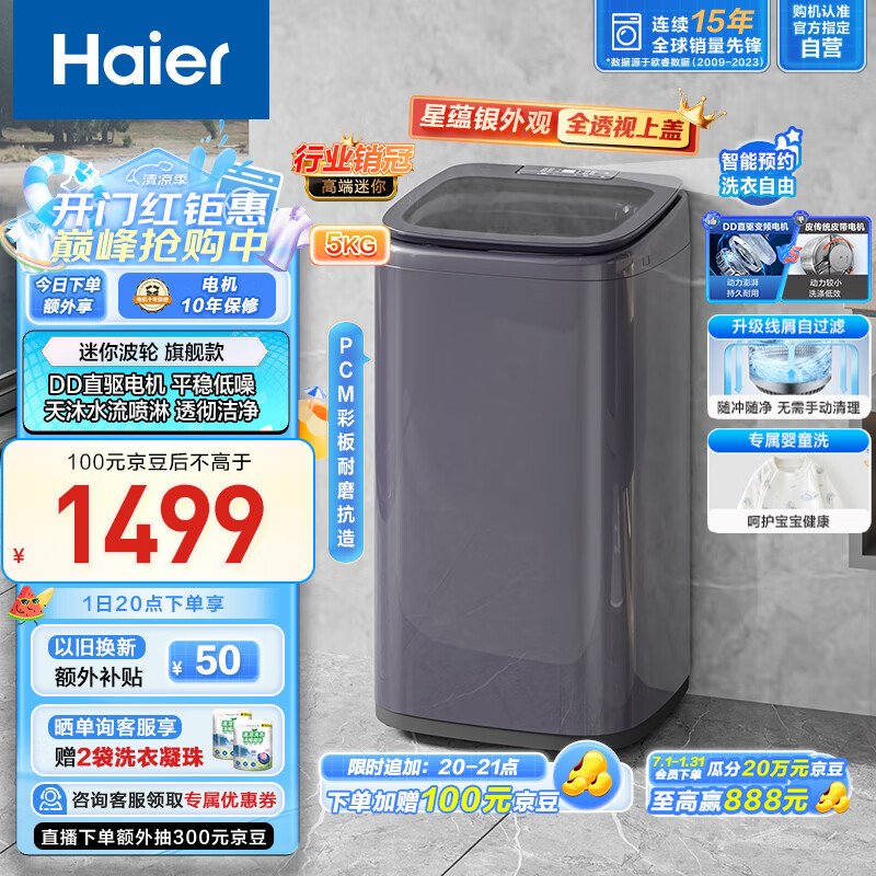 海尔(Haier)婴儿洗衣机5KG 洗衣机小型波轮全自动 宝宝洗衣机 内衣裤洗衣机 DD直驱变频 以旧换新 XQB50-B278价格:1599.00元!