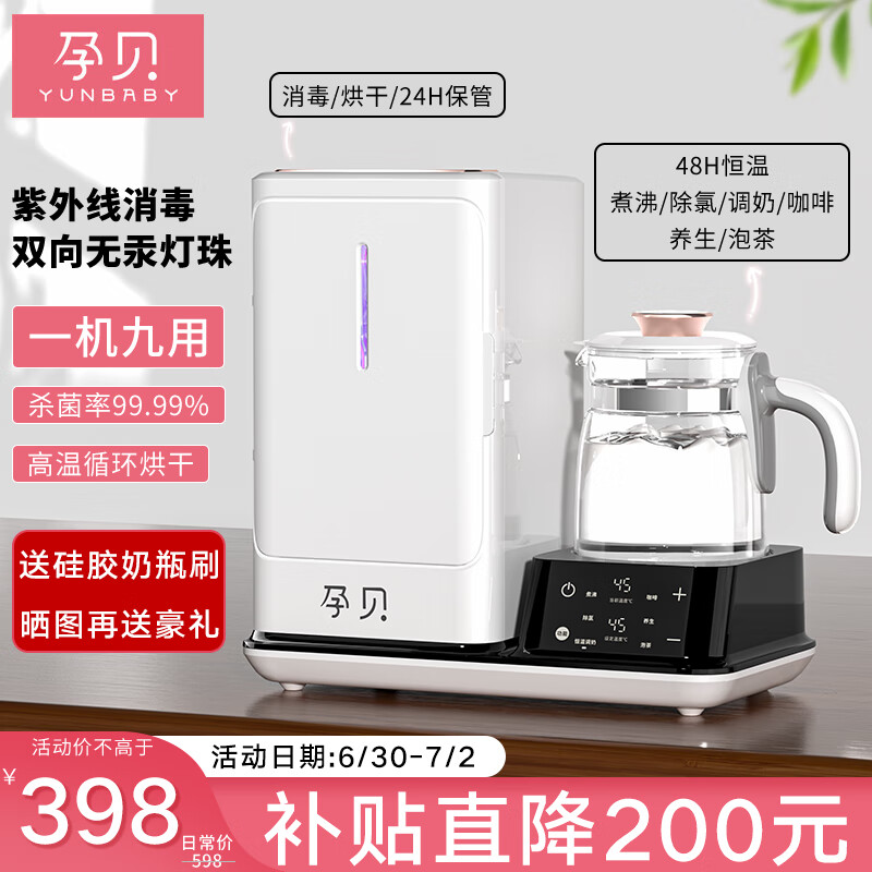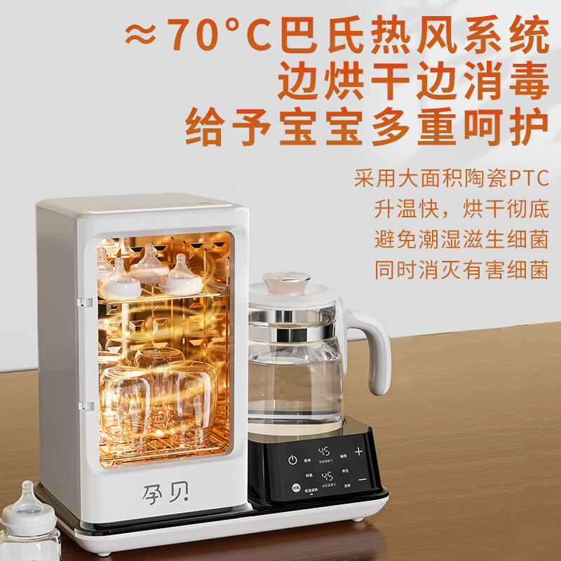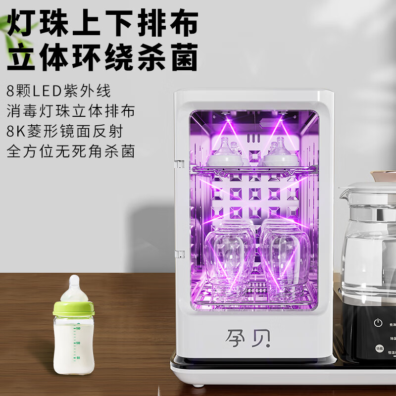孕贝紫外线奶瓶消毒器带烘干婴儿消毒柜二合一体机恒温水壶热调冲奶粉价格:398.00元!