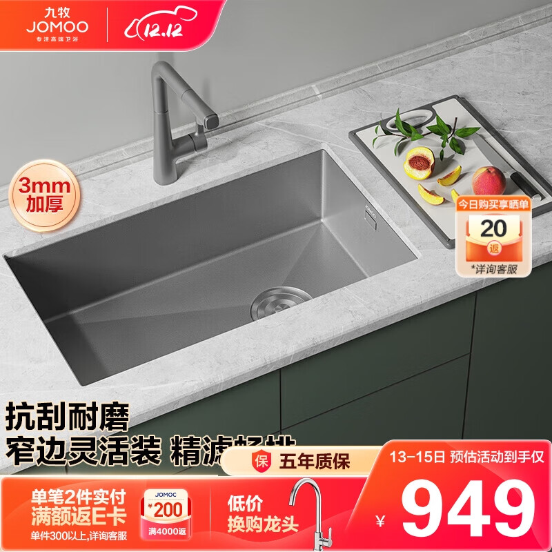 九牧(JOMOO)不锈钢手工枪灰水槽厨房洗菜盆单槽68*45(不含龙头) 06251-AZ-1价格:1089.00元!