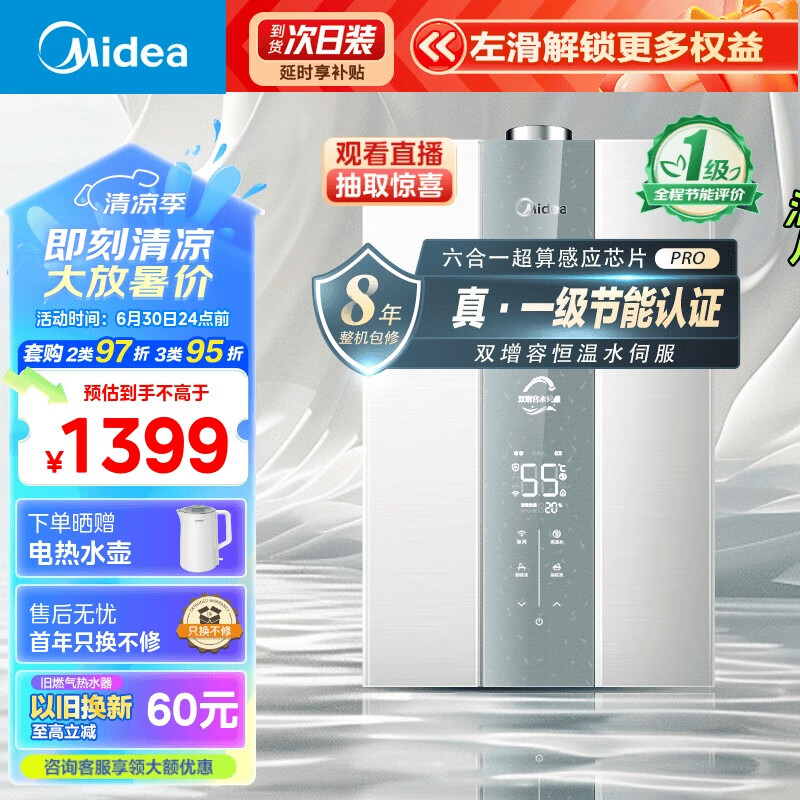 美的(Midea)16升燃气热水器 天然气 双增容水伺服恒温 一级节能 多重防冻 以旧换新 金刚速热舱 JSQ30-MK6 Pro价格:1399.00元!