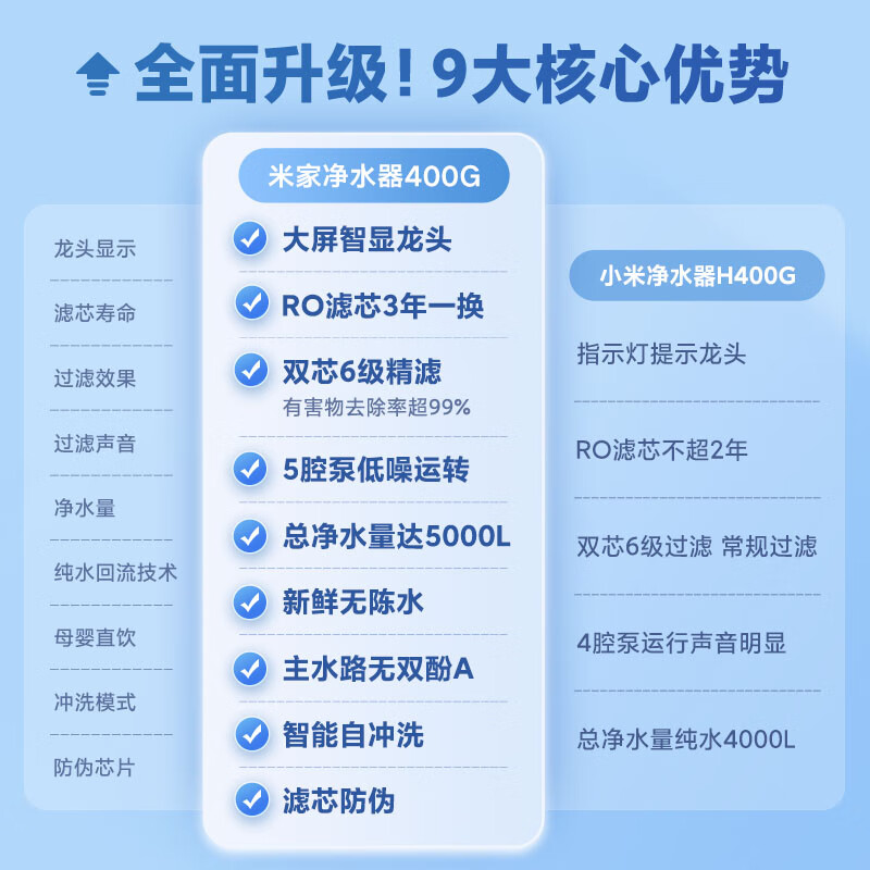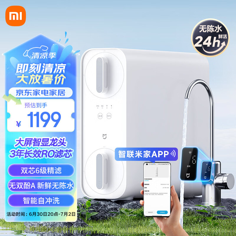 米家小米净水器家用净水机400G 双芯6级过滤无罐可直饮 3年RO反渗透 大屏智显龙头 无双酚A厨下净水器价格:1199.00元!