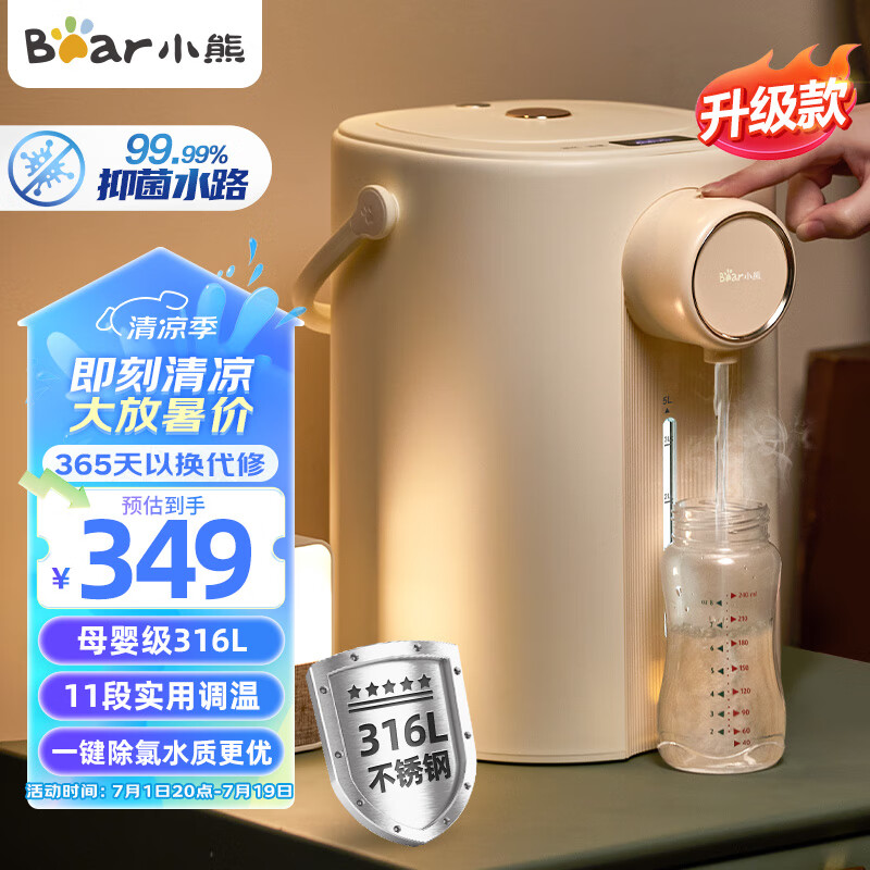 小熊(Bear)恒温水壶 电热水瓶5L防烫除氯电水瓶316L不锈钢电热水壶烧水壶 多段保温恒温电水壶 ZDH-H50R6价格:349.00元!