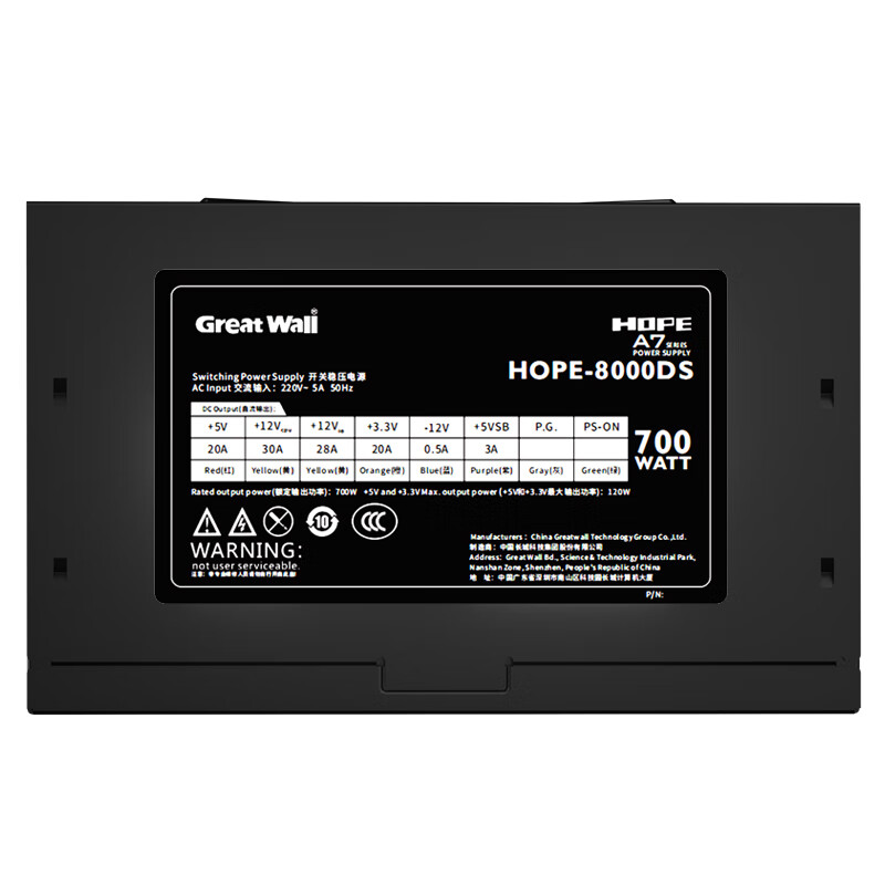 长城(Great Wall)额定700W HOPE-8000DS电脑电源(双8PIN/75cm长线材/宽幅/温控风扇/4显卡接口/独立开关)价格:329.00元!