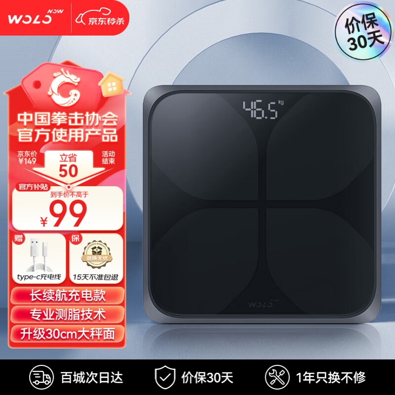 沃乐小米有品智能体脂秤Pro【升级大秤面充电款】电子体重秤家用高精准人体健康称APP款 实用生日礼物价格:149.00元!