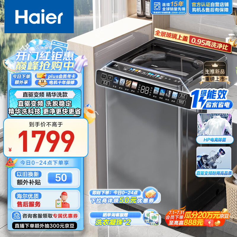 海尔(Haier)波轮洗衣机全自动家用 10公斤大容量 直驱变频 一级能效 高效精华洗 以旧换新EB100B37Mate5价格:1849.00元!
