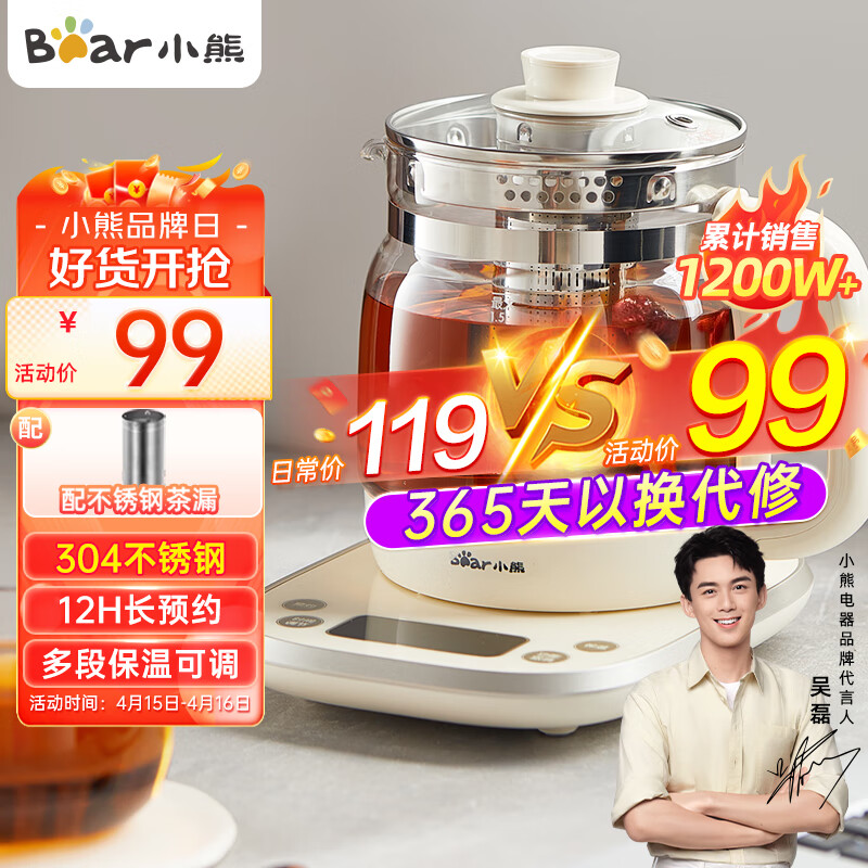 小熊(Bear)养生壶 1.5L煮茶壶烧水壶 可拆卸茶篮 煮茶器电水壶 恒温电热水壶 保温花茶壶 YSH-E15W7价格:99.00元!