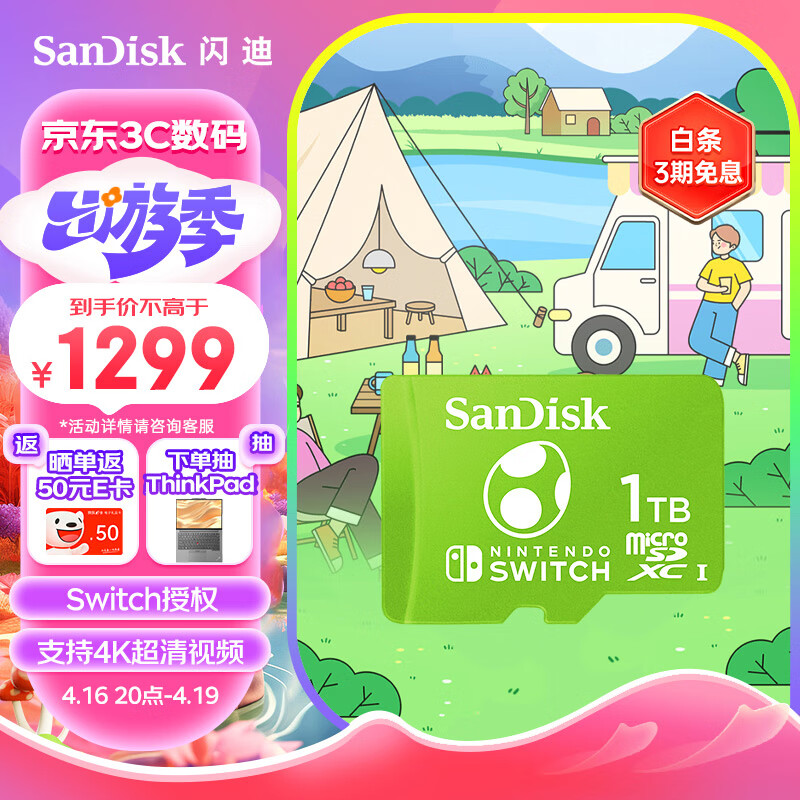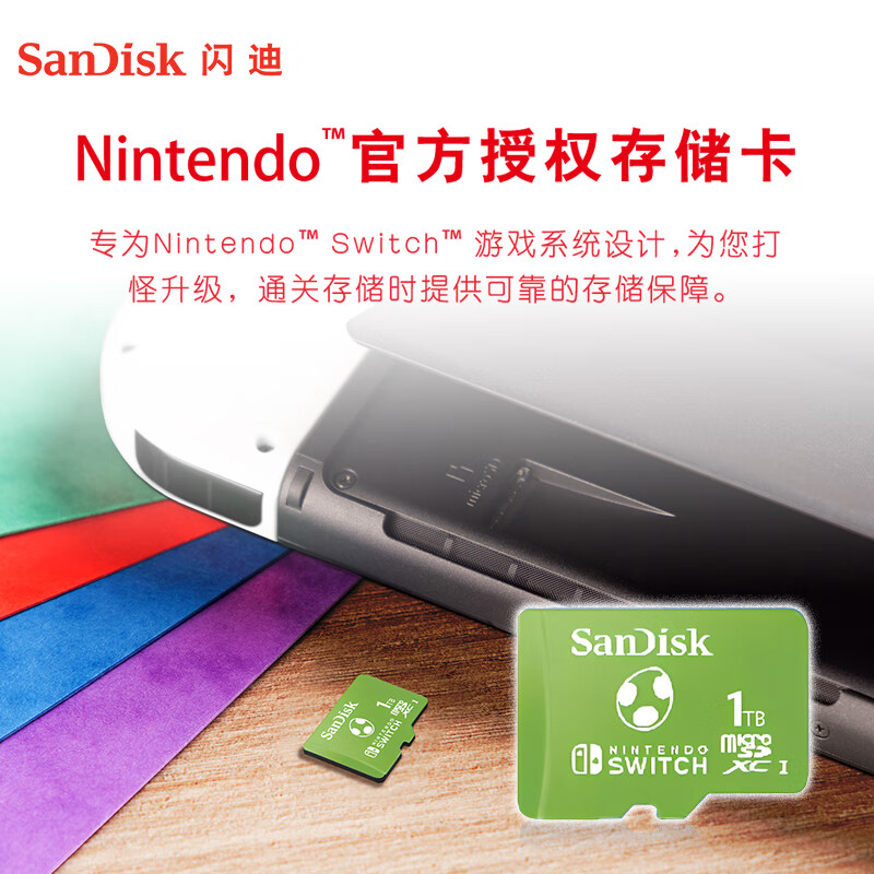 闪迪(SanDisk)1TB TF(MicroSD)存储卡 U3 4K高清视频 读速高达100MB/s Nintendo Switch任天堂授权价格:1299.00元!