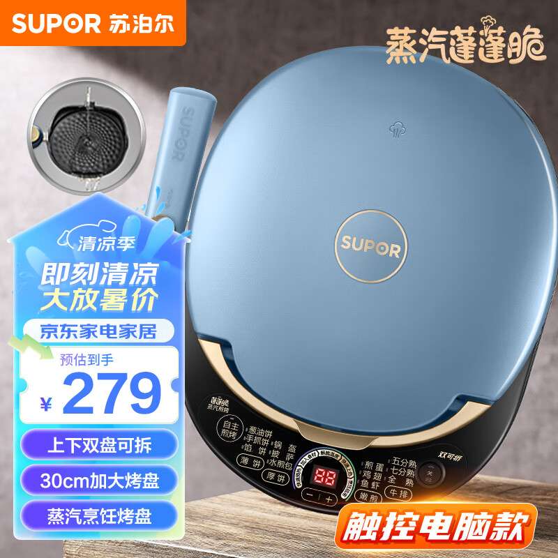 苏泊尔(SUPOR)电饼铛 上下盘可拆洗 家用双面加热加大加深烙饼煎饼 早餐机多功能蒸汽煎烤机电饼档 JD30RQ859价格:279.00元!