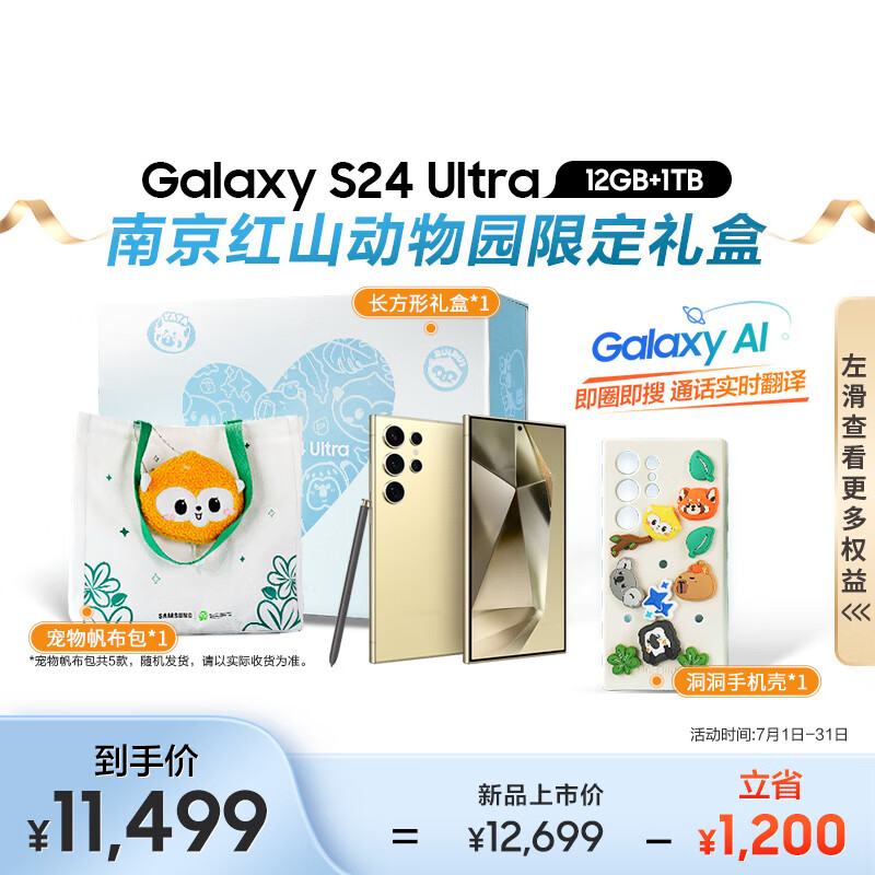 三星(SAMSUNG)Galaxy S24 Ultra AI手机 同声翻译 智能拍照 南京红山动物园限定礼盒 12GB+1TB 钛羽黄 游戏手机价格:11499.00元!