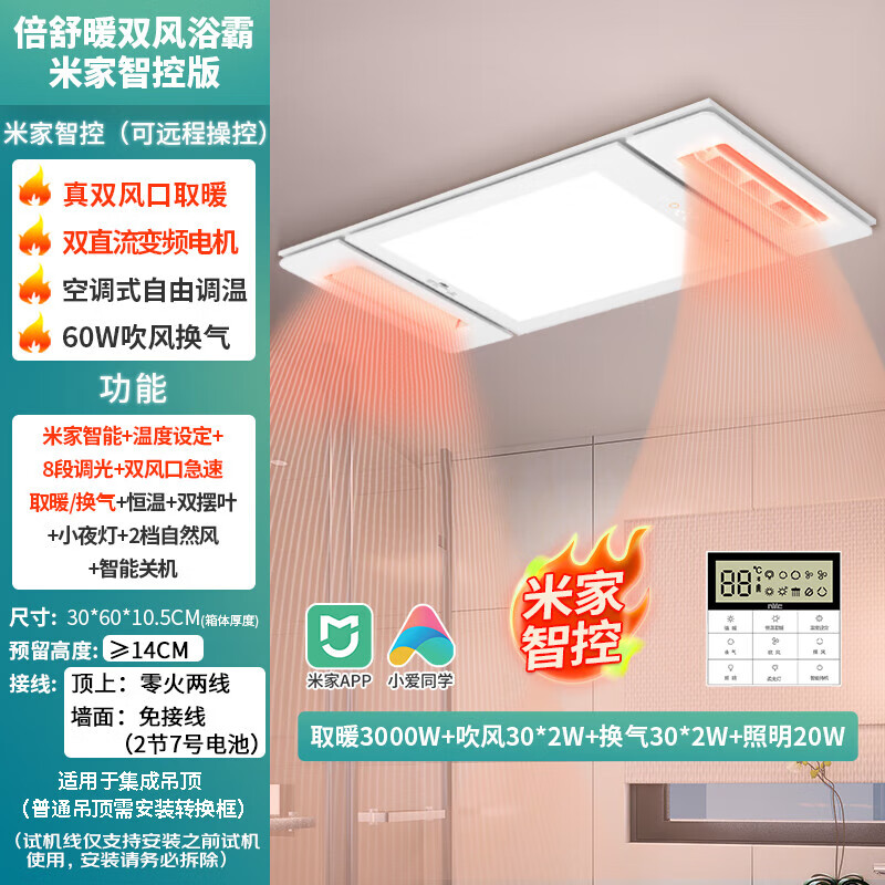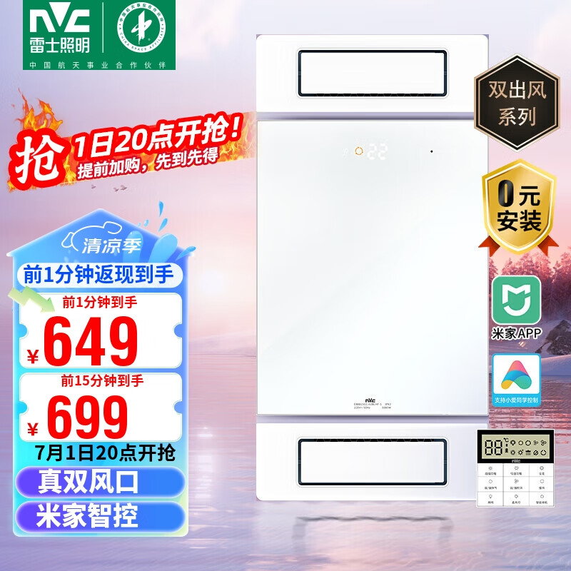 雷士(NVC)米家智能变频真双风取暖浴霸暖风照明排气一体机卫生间浴室Y289价格:999.00元!